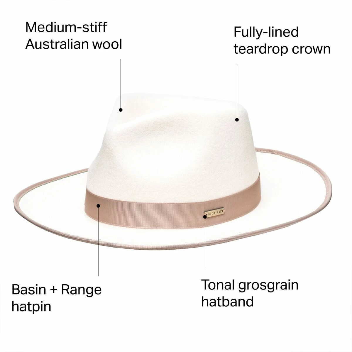 - Tonal grosgrain hatband with subtle sheen for elevated flair