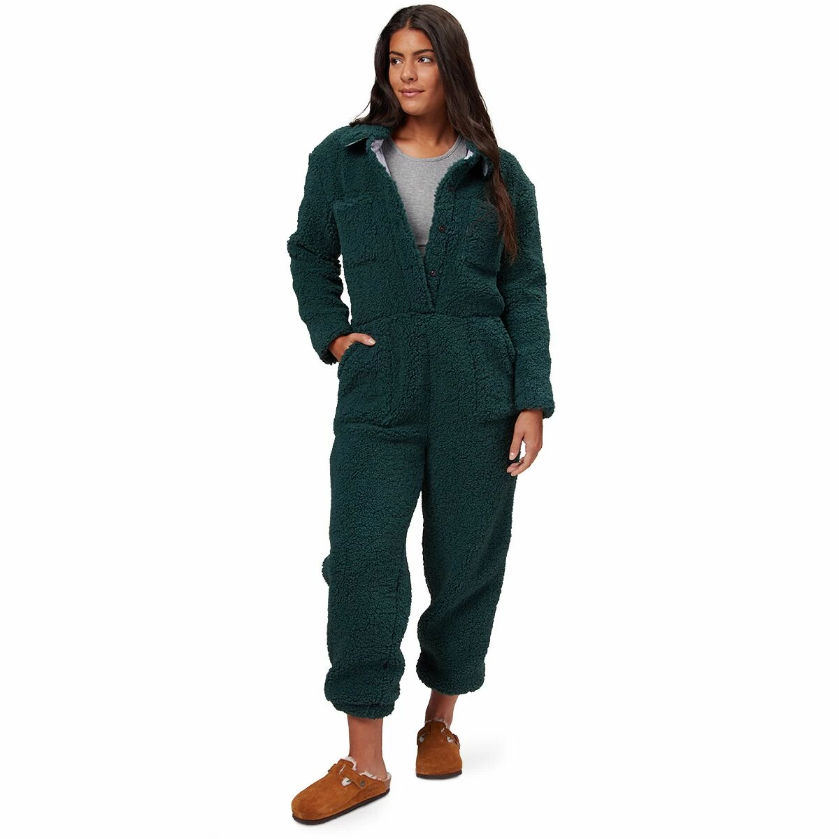 Apres ski or on the couch, the Sherpa Jumpsuit envelops us in fluffy, cuddly goodness. No matter if we’re stepping into the lodge or cozied up next to our furry friend, we love the 100% poly sherpa construction that leaves us feeling more than comfortable on chilly fall and winter days.