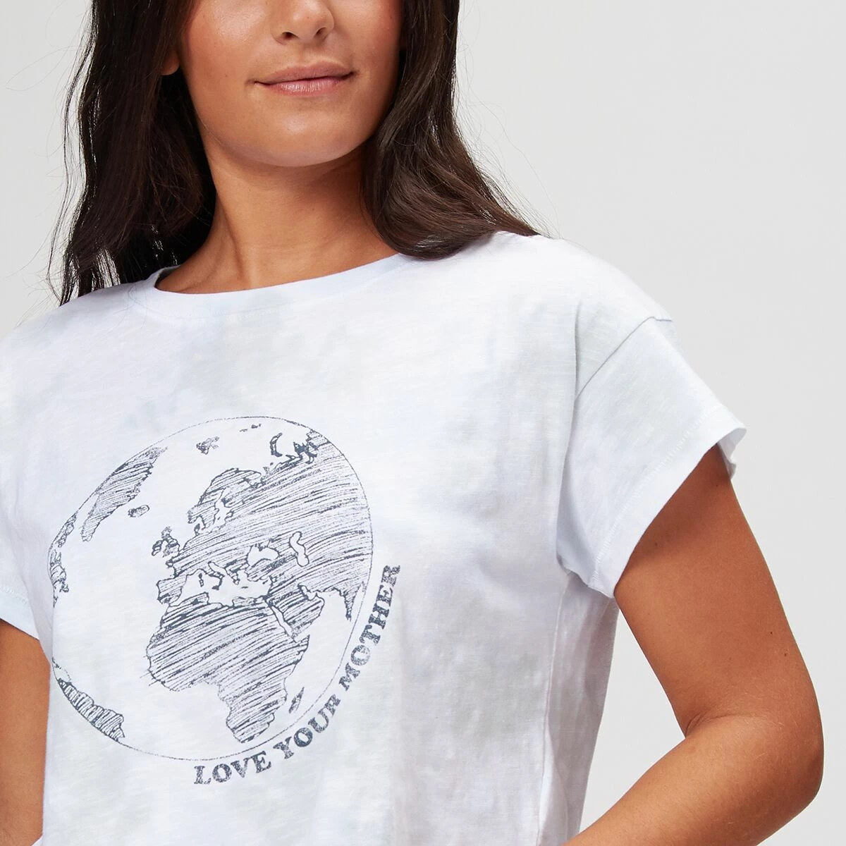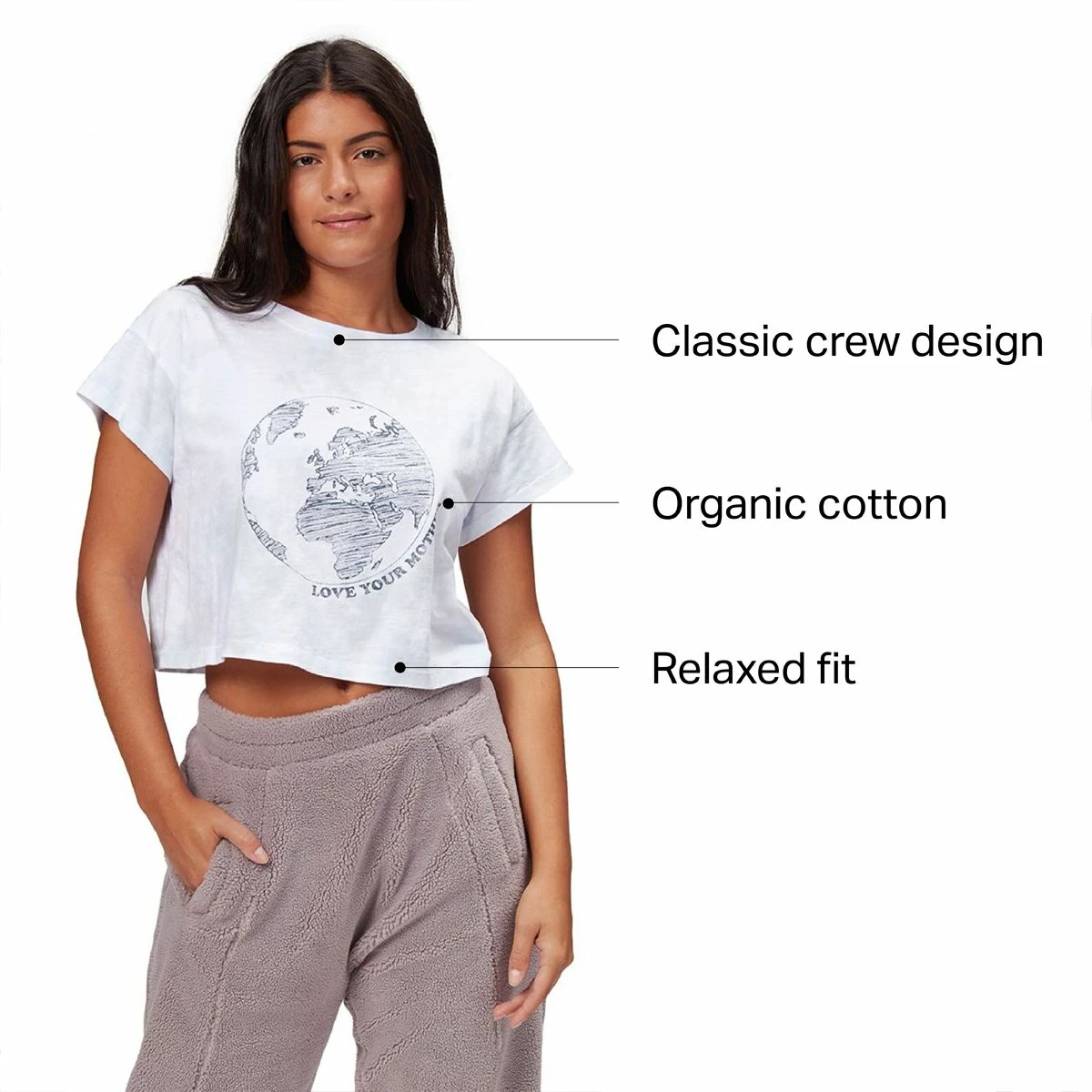 From white sand beaches and sparkling seas half the world away to our own red rock desertscapes, we love our planet, so we chose earth-friendly materials for our Short-Sleeve Crewneck Boxy Graphic T-Shirt. This aspirational graphic tee is made with organic cotton in an effortless slub knit and cropped cut that feels as laid-back as it looks. On global excursions and stay-cations alike, this comfy-cool top is an everyday essential that fabulously finishes any ‘fit.