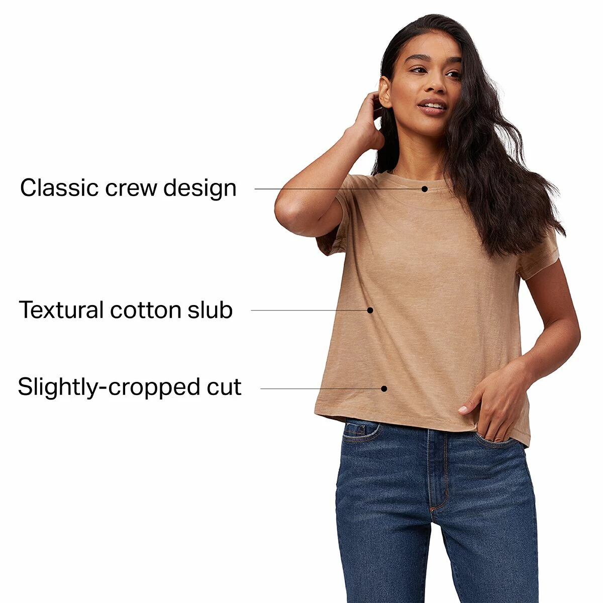 To boost our basics, we crafted this Short-Sleeve Crewneck T-Shirt with everyday comfort in mind. Its classic shape drapes beautifully over a sporty tank or under a cozy flannel, and its cropped length looks dreamy with denim. Slub cotton adds an extra element of style, bolstering the organic threads with a satisfying texture.