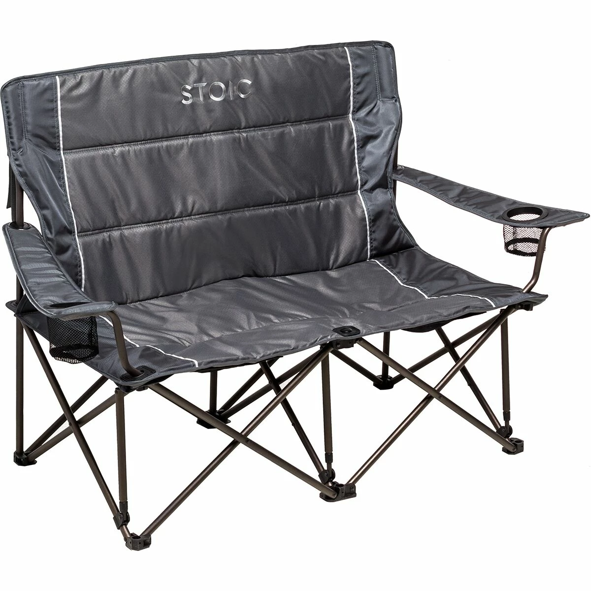 We designed the Spruce Duo Love Seat for campfire snuggles. The mesh under-seat pockets stash our phones for uninterrupted relaxation. The lower seat design puts us at optimal marshmallow-roasting height. When our sugar clouds are perfect, we slot our bevies into the cup holders, freeing both hands for constructing the perfect s’mores.